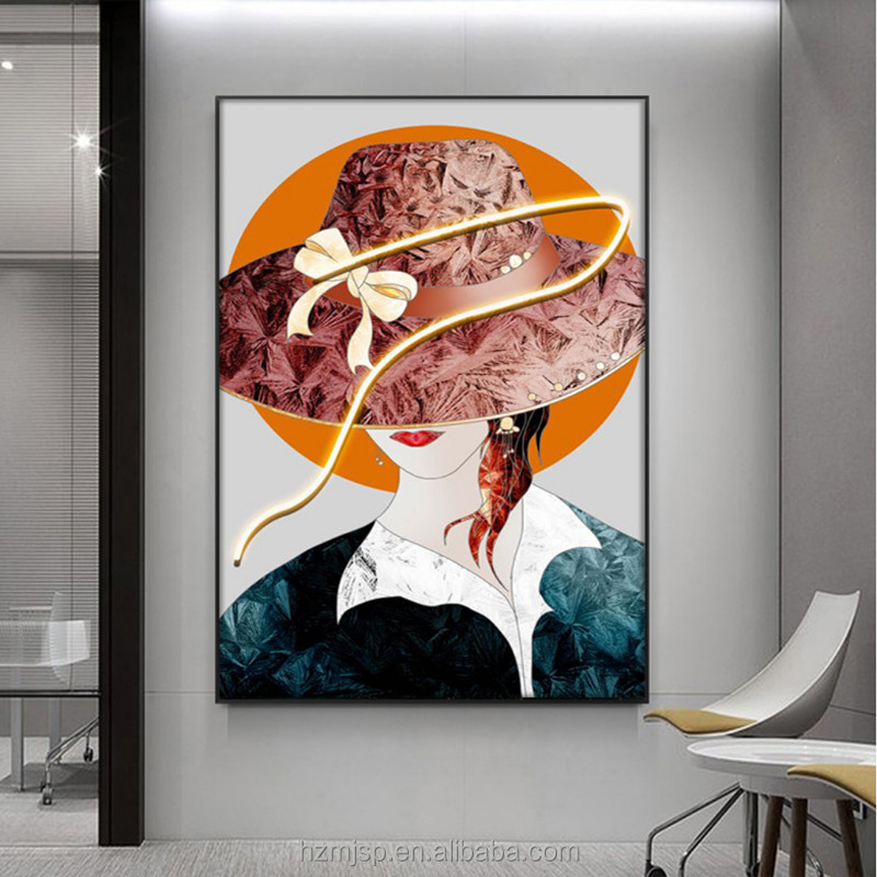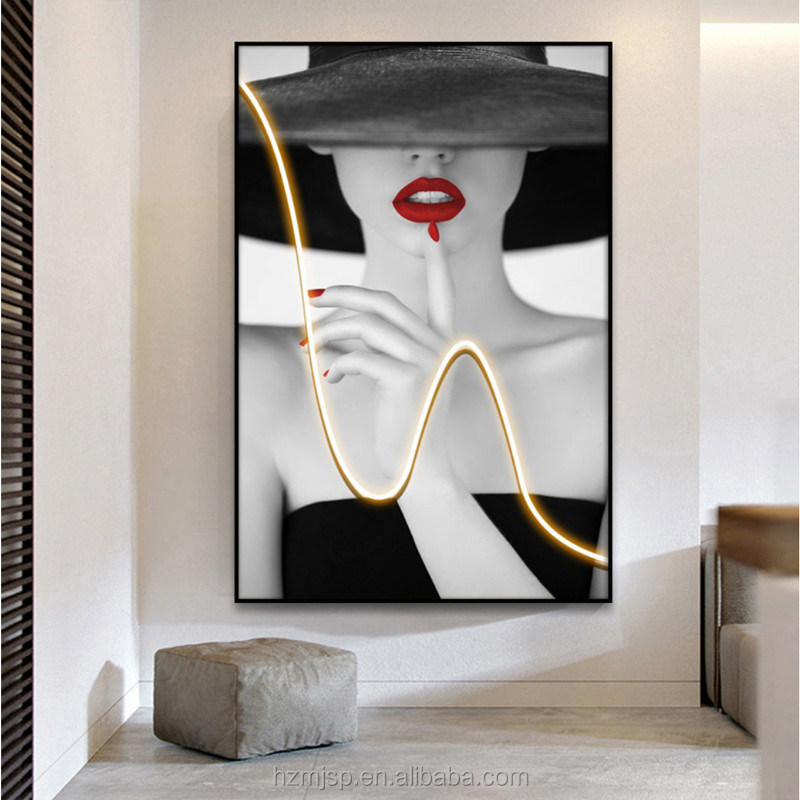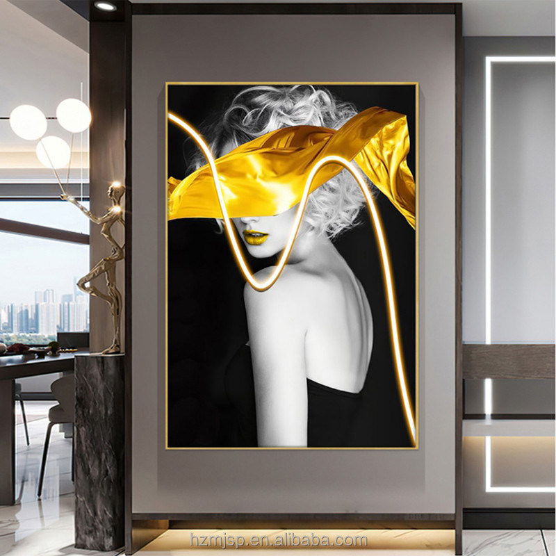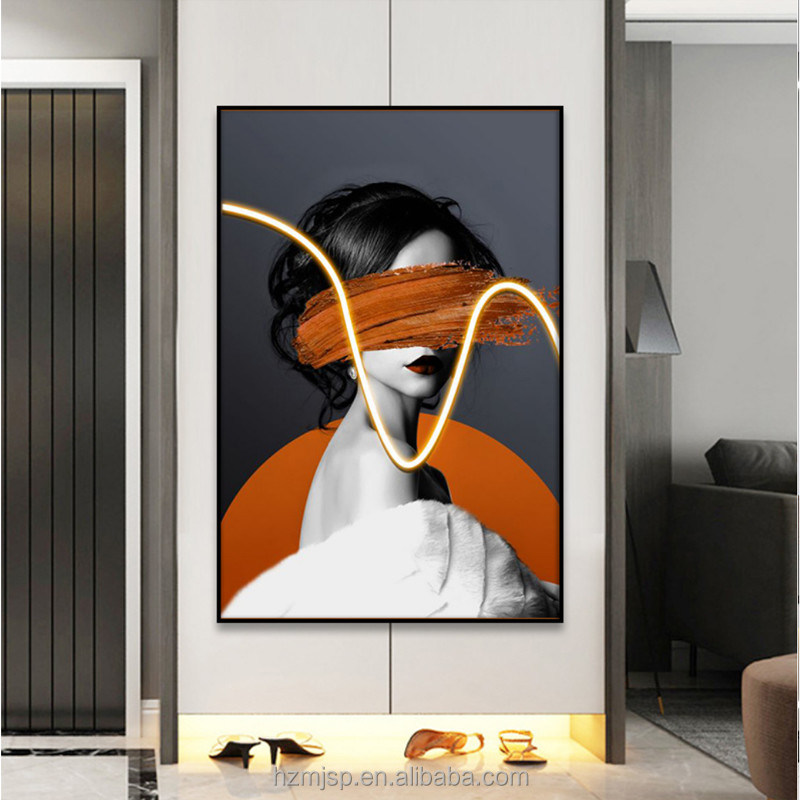আধুনিক স্টাইলের প্রবেশদ্বার আলোকসজ্জা চিত্র প্রাচীর শিল্প হালকা প্রতিকৃতি পোস্টার 3 ডি এলইডি পেইন্টিং সহ ক্যানভাসে মুদ্রিত
