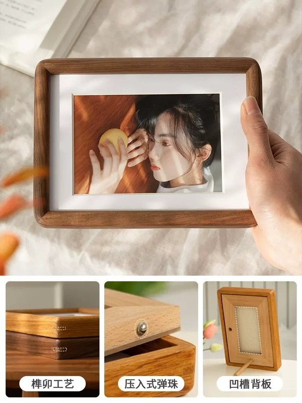 সরলতা শৈলী ছোট ছবির ফ্রেম প্রাকৃতিক কাঠের ছবির ফ্রেম টেবিলটপ ব্র্যাকেটের সাথে 1