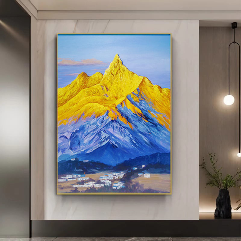 কাস্টম হাতে আঁকা গোল্ডেন মাউন্টেন আধুনিক বিমূর্ত ঘন টেক্সচার বিভিন্ন মুদ্রণ পদ্ধতির সাথে 3 ডি রিলিফ পেইন্টিং 0