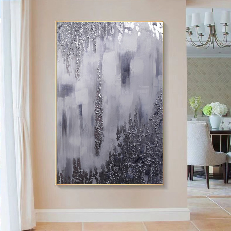 কাস্টমাইজড আকার গৃহীত হস্তনির্মিত বিমূর্ত সিলভার ফয়েল আর্ট তেল পেইন্টিং ওয়াল আর্ট আলংকারিক পেইন্টিং 0