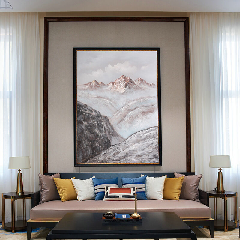 বাড়ির সাজসজ্জার জন্য হাতে আঁকা ল্যান্ডস্কেপ দৃশ্য, লিভিং রুম ব্যাকগ্রাউন্ডের জন্য উপযুক্ত