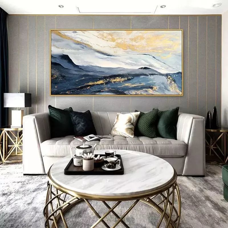 আধুনিক বিমূর্ত নীল সোনালী হাতে আঁকা ক্যানভাস তেল ল্যান্ডস্কেপ পেইন্টিং